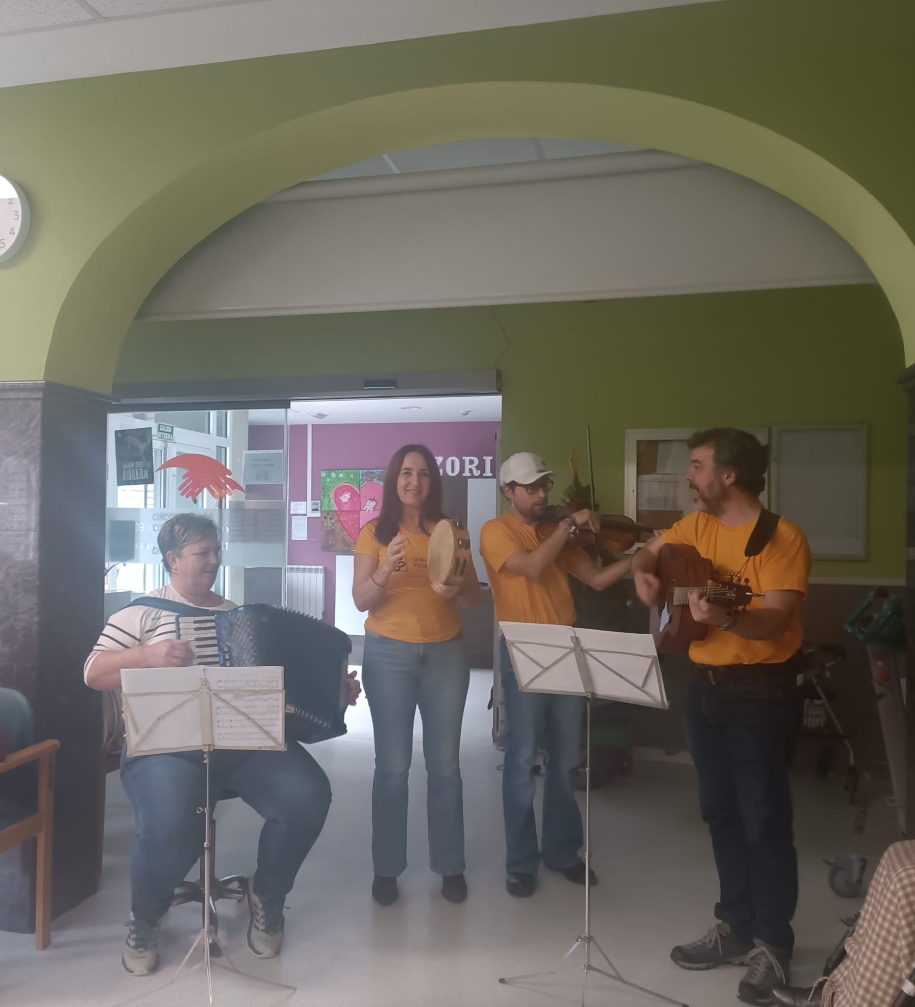 Ohiturari jarraituz, Gabon Kontzertuko egunean, bisita berezia egiten dugu Musika Eskolako Irakasleak. Ahal dugunok behintzat, Gabon Kantak abestera joan ohi gara. Perkusio txikiko instrumentuak eramaten ditugu eta egoiliarrekin batera Euskeraz zein erderaz, gabon kanten erritmora saio eder bat egiten dugu. Eskerrikasko Egoitzako langileei "piskokabis" txikiagatik! Eta Ande Ande la Marimorena edo Olentzero eta Gabon Gaboneterekin pandero eta txintxarriak ederki astindu zituzteneri! Datorren urterarte!