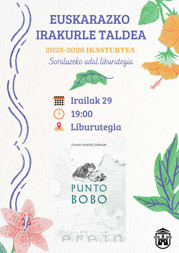 Euskarazko irakurle taldeak gaur, astelehena, irailak 29, ekingo dio ikasturte berriari Itxaso Martin idazlearen Punto bobo eleberriarekin. Taldeko kideak bi hilean behin elkartzen dira, irailetik maiatzera bitarte, aldiko liburu ezberdin bat lantzeko; guztira, euskaraz idatzitako zein euskarara itzulitako bosti liburu irakurtzen dira. Ikasturtean birritan, gainera, aukeratutako liburuaren idazlea ere gonbidatzen dute saioetara.