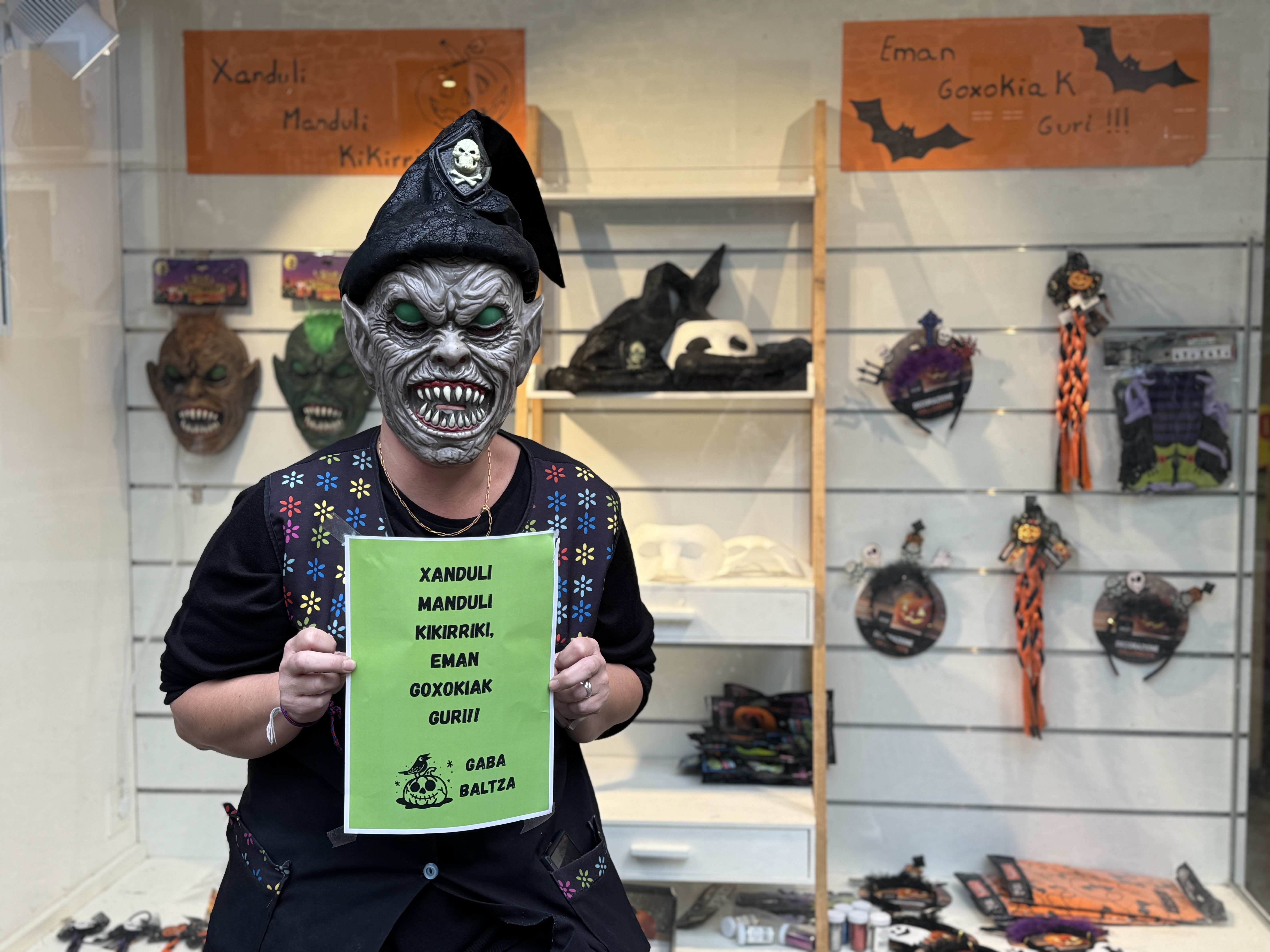 Gaur, 19:00etan hasiko da Gaba Baltzeko gozoki eskea. Erdiguneko saltoki eta taberna gehienek emango dituzte gozokiak, Santa Anan, Zubi Nagusian, Kalebarrenen, Plaza Zaharrean, Etxaburuetan eta Gabolatsen. Parte hartuko duten gehienek eskaparatean edo atean dute adierazita zein den eskerako esapidea: Xanduli, manduli, kikirriki, eman gozokiak niri!