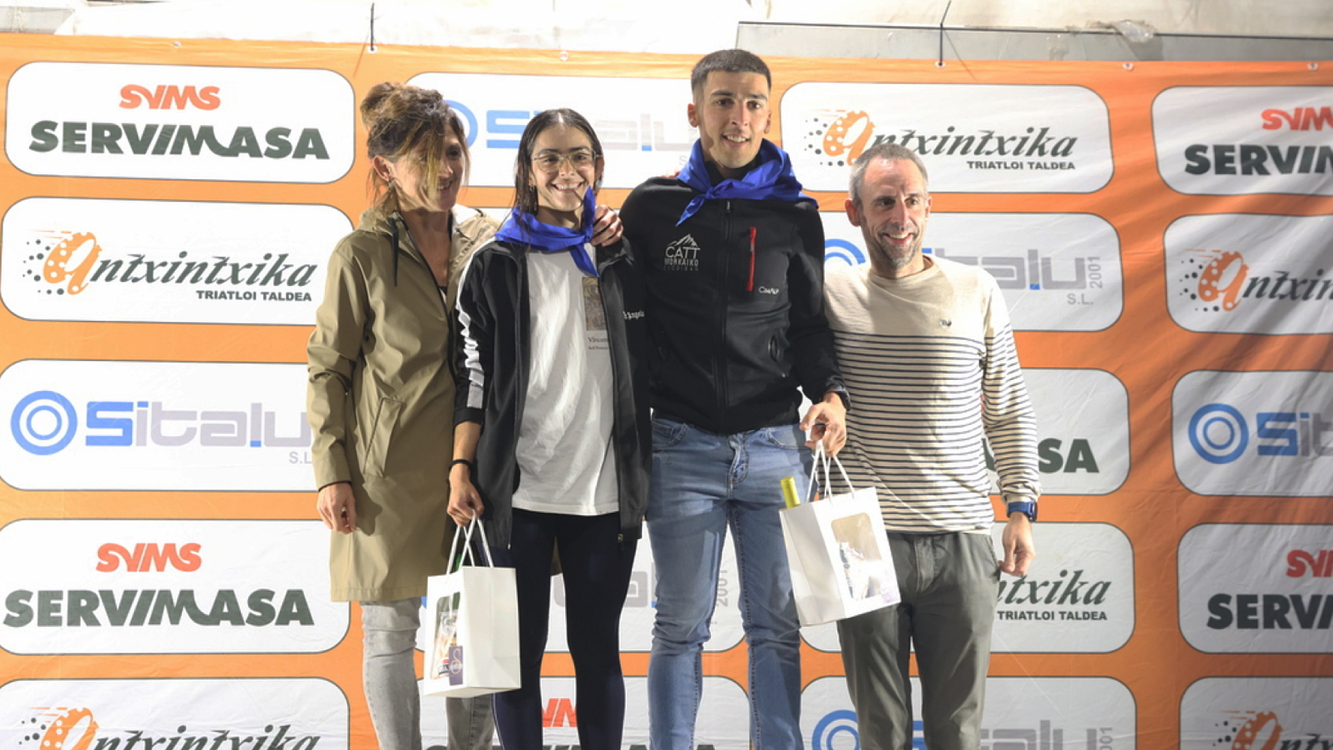 Antxintxika lasterketan parte hartu zuten 400 parte-hartzailetatik hamalau izan ziren soraluzetarrak. Aitor Hernandez Oruesagasti (00:34:18) eta Vanesa Orozco Franco (00:53:56) izan ziren azkarrenak, eta Bergaran jaso zituzten garaikurrak Unai Larreategi alkatearen eta Jone Alberdi Kirol zinegotziaren eskutik. Argazkiak: Imanol Beloki Unamuno (Goiena).
