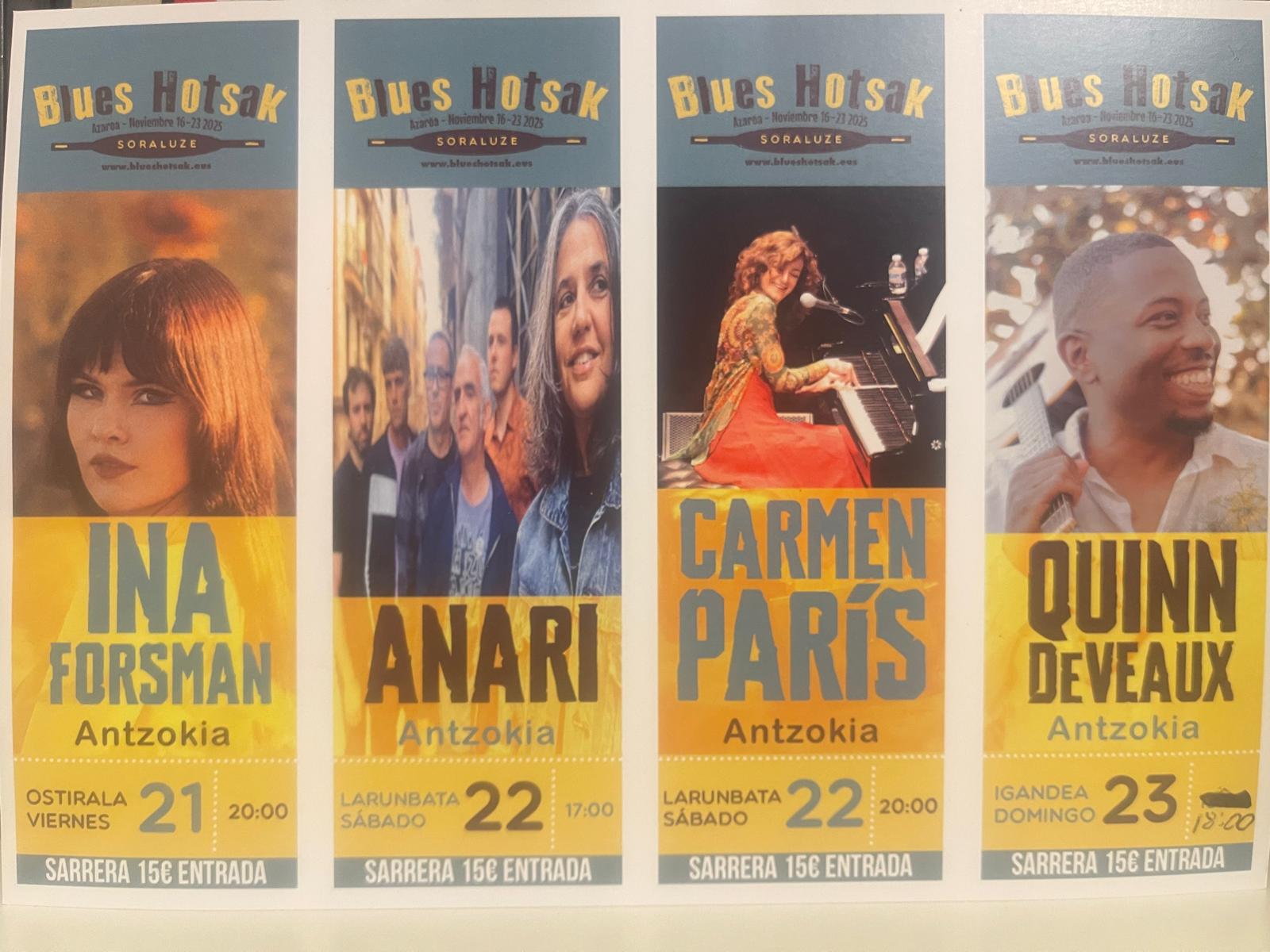 Jaialdiko ordainpeko kontzertuak azaroaren 21etik 23ra, barikutik domekara bitartean izango dira: Ina Frosman finlandiarra, Europako bluesaren ordezkari gorenetakoa (bariku iluntzean); Anari, euskal musikako ahots pertsonal eta garrantzitsuenetakoa (zapatu arratsaldean); Carmen Paris, abeslari eta konpositore kataluniarra, jota eta folkloreari aire berria ekarri diona (zapatu iluntzean); eta Quinn Devaux estatubatuarra, Soul, Funk eta R&B musika lantzen dituena (domeka iluntzean).